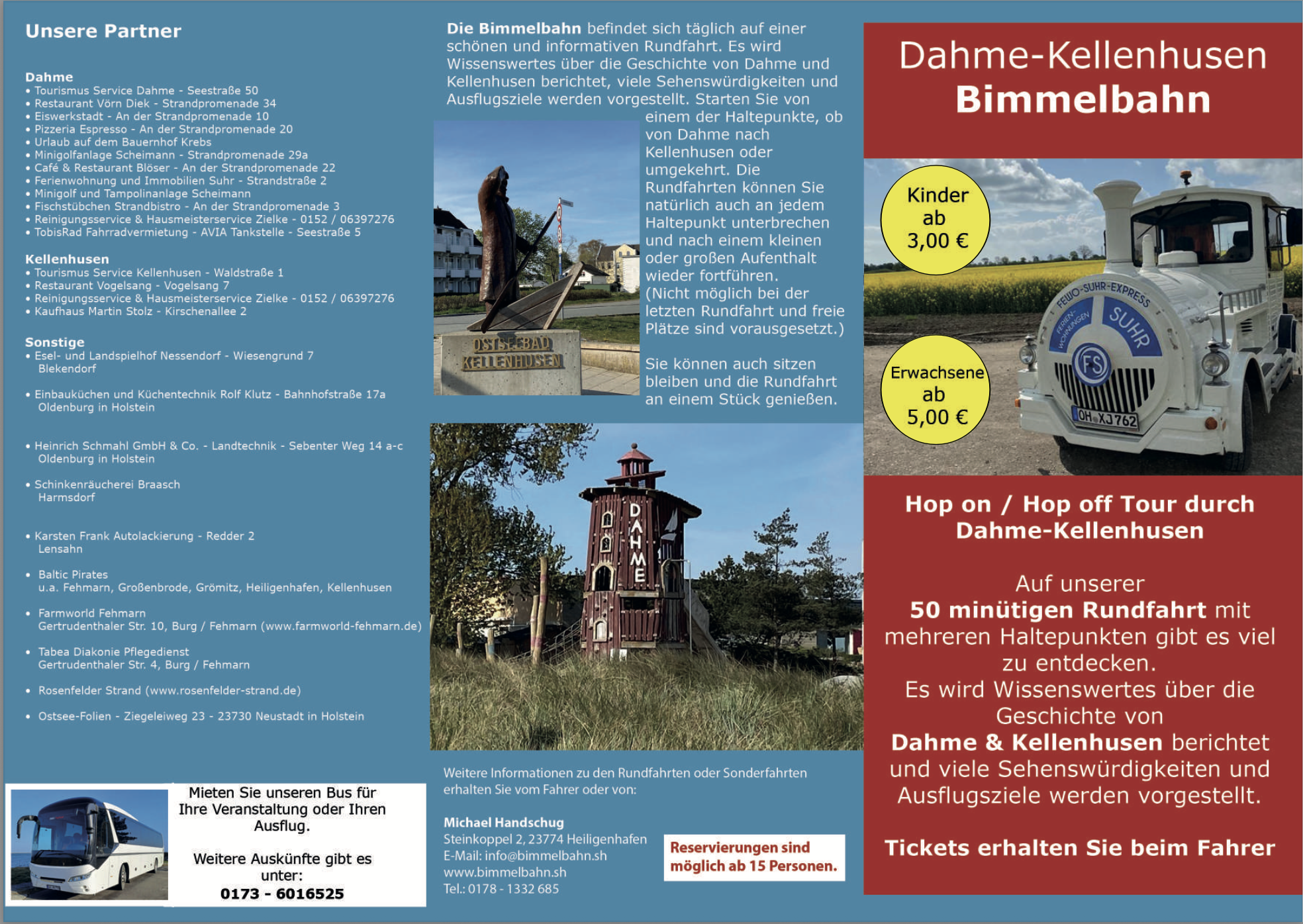 Erleben die malerische Ostseeküste Schleswig-Holsteins auf eine ganz besondere Weise – mit einer gemütlichen Fahrt in unserer Bimmelbahn! Zwischen den charmanten Ostseebädern Dahme und Kellenhusen erwartet dich eine entschleunigte Tour voller Natur, Geschichte und maritimer Highlights.